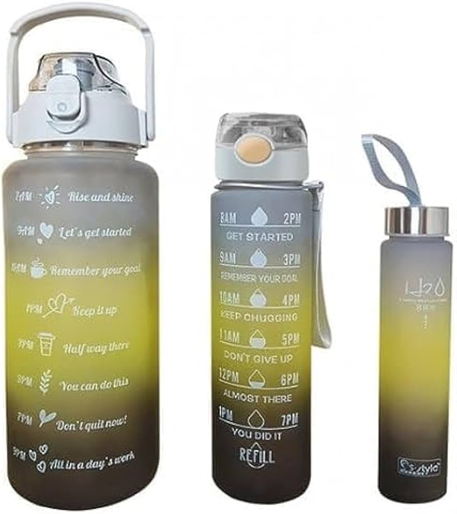 جنس بدنه : پلاستیک فشرده درجه یکسه قمقمه در یک محصول با کیفیت عالیقمقمه بزرگ ظرفیت 2000ccقمقمه متوسط ظرفیت 800ccقمقمه کوچک ظرفیت 300ccقمقمه بزرگ دارای دو درب نی دار و ضامنیقمقمه متوسط دارای یک درب ضامنیقمقمه کوچک دارای یک درب پیچیطراحی فوق العاده با خاصیت ضد نشتعاری از مواد سمی BPA وDEHPبدنه مدرج به واحد ml و OZمناسب انواع نوشیدنی های سرد