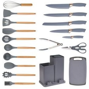 آشپزی حرفهای را با سرویس ۱۹ پارچه چاقو و ست آشپزخانه سیلیکونی ما تجربه کنید! این مجموعه کامل و باکیفیت با طراحی ارگونومیک، کار شما را در آشپزخانه آسان و لذتبخش میکند. ضد زنگ و مقاوم در برابر حرارت، بهترین انتخاب برای هر آشپزخانهای. هماکنون خرید کنید و تحول را احساس کنید!