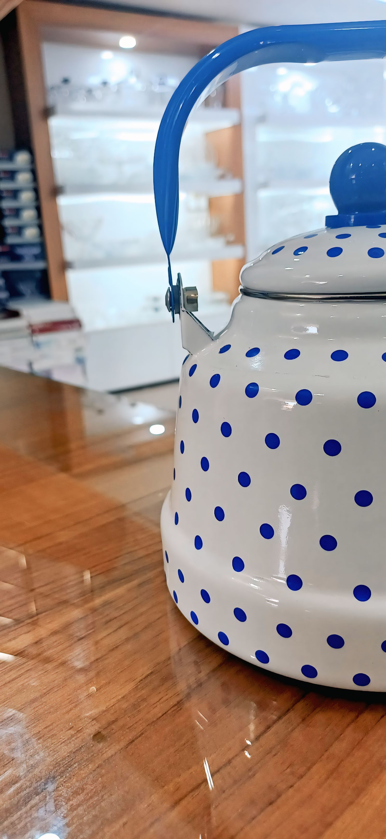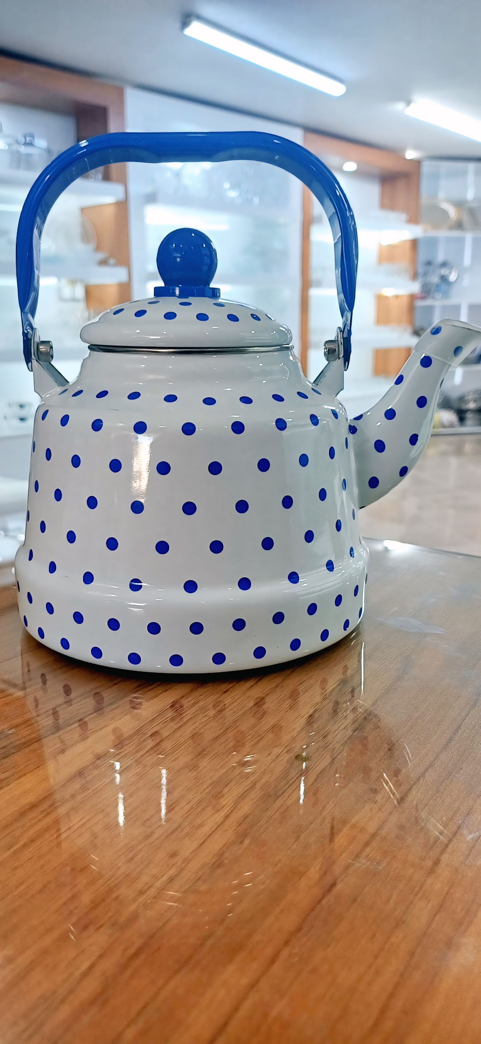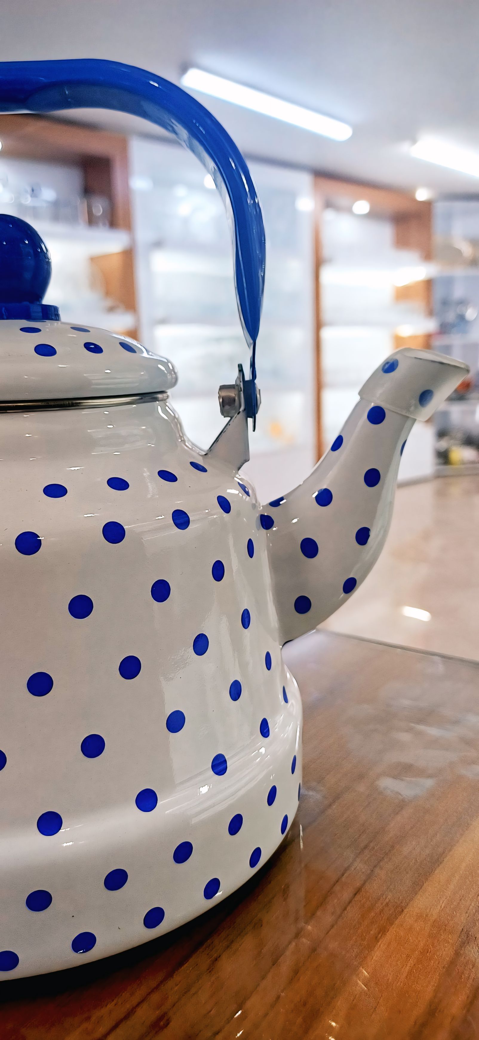 کتری لعابی وارداتی اورجینال خالدار آبی ۱ لیتر